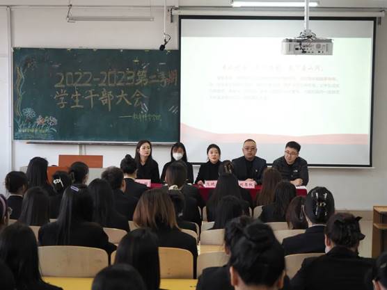 所作出的贡献表示衷心的感谢,并提出五点希望要求。一是学生干部要不忘初心,牢记使命,以饱满的热情、干事的激情做实学生工作;二是要以身作则,做学生中的先锋模范表率,切切实实为学生服务;三是学会统筹安排,处理好学习和工作之间的关系,两手都要抓,两手都要硬;四是当好学生中的安全员、信息员,关注、反馈广大同学的思想动态、行为习态、心理状态;五是要积极参与、策划、统筹、总结各项活动,做有思考、有高度、有深度、有温度的学生骨干。学生干部们认真聆听,仔细记录,并表示一定会遵循工作要求,在践行实践和创新创业活动上重点发力做好自身工作。