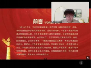 理论学习伊始,主持人带领学生观看了习近平总书记考察湖南的视频。通过视频介绍,学生们充分认识到强国必先兴教,并表示作为新时代青年应坚定文化自信,提高自身素养,将为国育才作为自觉追求。随后,主持人带领学生重点学习了习近平总书记在讲话中提出的重要指示,引导青年师范生矢志教育报国,传承行知精神。在此过程中,同学们积极表达自己的感悟,提出要在学思践悟中承担教育使命,在奋发有为中赓续奋斗精神,深入了解教育实质,争做“四有”好教师。最后,主持人动员同学们以习近平总书记的重要讲话精神为指导,持续奋勇争先,谱写发展新篇,同学们也更加坚定了前行的信心,不负青春韶华,砥砺担当作为。