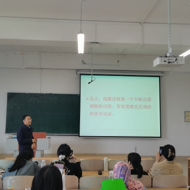 潘洪建以“教育类课题如何选题以及论证”为切入点,从研究题目的产生与提炼、课题论证两个方面进行了分享。潘洪建指出,在研究题目的产生与提炼方面,首先,应基于需要性原则和创造性原则,在学科之间的相互交叉和相互渗透的“边缘区”“结合部”“交叉点”进行选题;其次,课题研究问题要坚持问题导向,从近年知名期刊发表的学术论文、优秀博士论文的结语、近年立项的国家基金项目中综合相关题目,寻找自身感兴趣的选题;再次,应在文献调研和科学分析、提出选题初步论证的基础上评议和确定课题选题;最后,在表述研究题目时要用语规范、问题突出、具有新意、名称简洁。在课题论证方面,潘洪建重点从课题申报书的撰写以及申报书的修改与完善进行了讲解,强调在申报书撰写过程中中要重点关注核心概念及其界定,国内外同一研究领域现状与研究的价值,研究的目标、内容与重点,研究的思路、过程与方法,主要观点与可能的创新之处,预期研究成果,完成研究任务的可行性等七个方面,并通过具体的案例对以上方面进行了分析与讨论。潘洪建结合自身的申报经验以及相关案例,深入浅出、形象具体的向师生们讲解了教育科研课题的申报要领,赢得了参会师生的热烈掌声。