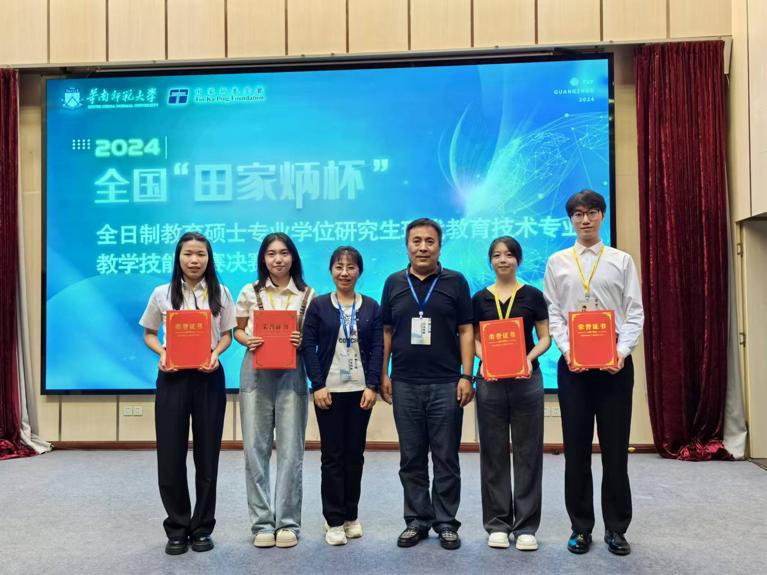 全国“田家炳杯”全日制教育硕士专业学位研究生教学技能大赛是目前国内层次最高、规模最大的教育硕士教学技能竞赛赛事。为确保选手能够在比赛中脱颖而出,现代教育技术领域特别组建了由李岩、刘俊强两位领域教师以及蔡福民、曹红霞、孙文方和朱林四位一线信息技术教师构成的指导团队。该团队从初赛阶段起,便对参赛学生进行了全面系统的集训与指导。从对课标和教材的深入研读,到教学设计的修改完善,再到教学呈现的反复打磨等各阶段为选手提供了全程精心指导,提升了参赛选手的专业素养和教学能力。
