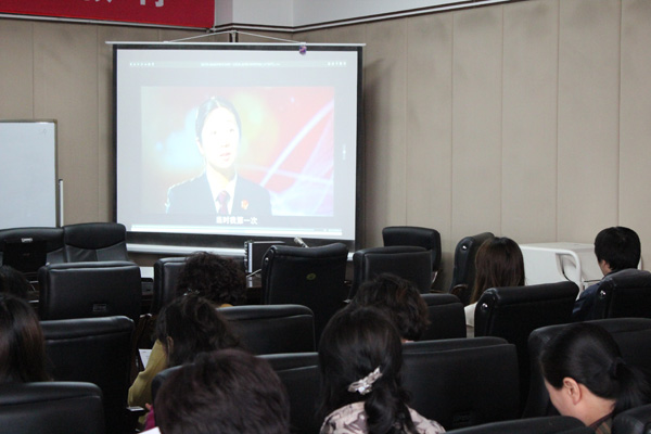 与会教师集体观看了中共中央组织部党员教育中心发行的“践行群众路线好榜样”视频集,通过对航天英模罗阳、蓝领专家孔祥瑞、当代农村干部的杰出代表吴仁宝以及最美乡村校长杨建一等杰出的践行群众路线好榜样事迹的观看学习,接受了一次党性的洗礼,让大家得到了深刻的教育。