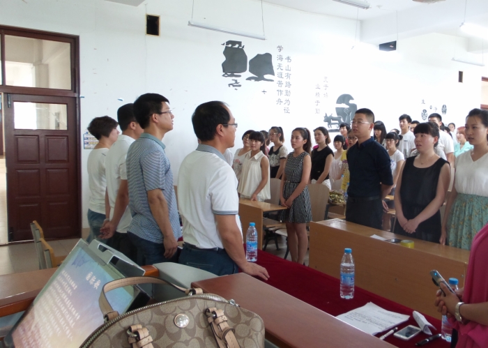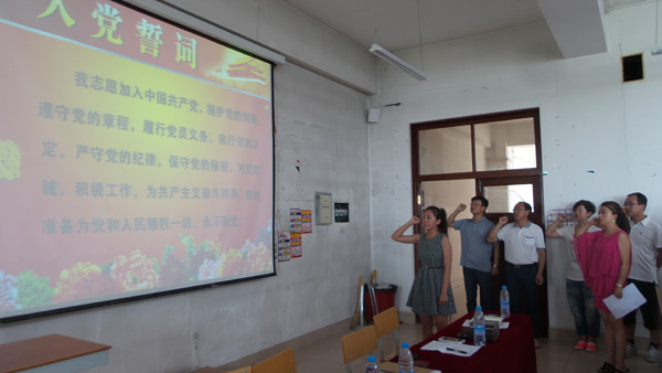 团总支书记袁鸣梓同学的带领下,所有党员高举右拳,面对中国共产党旗帜庄严宣誓,新党员表明自己为共产主义事业奋斗终生的决心,老党员重温誓词的庄严肃穆,宣誓完毕,学生们依次大声的说出宣誓人的名字。最后,辛显文书记进行总结发言,讲述中国共产党成立及奋斗的光荣历史,鼓励学生党员牢记入党誓词,践行党员义务,为全院学生做出先锋示范作用。