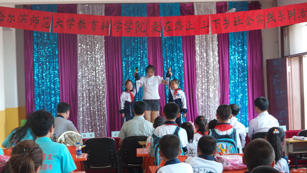 于2014年8月28日、29日,在兰西县榆林镇中心小学开展了“爱在路上” 教育关爱服务暑期“三下乡”社会实践活动。