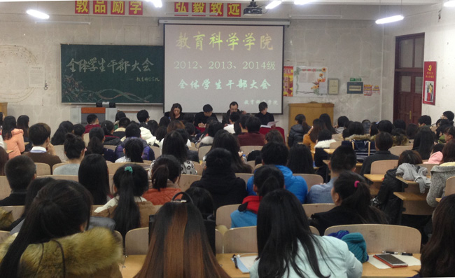 党委副书记魏衍军以及三位辅导员老师出席活动,2012、2013、2014级全体学生干部参加。