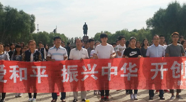 2015年9月18日下午12时40分,以“勿忘国耻 珍爱和平 振兴中华 开创未来 ”为主题的爱国系列活动(二)——百人宣誓大会社科楼门前广场严肃庄重的举行。参加此次活动的有英超足球直播