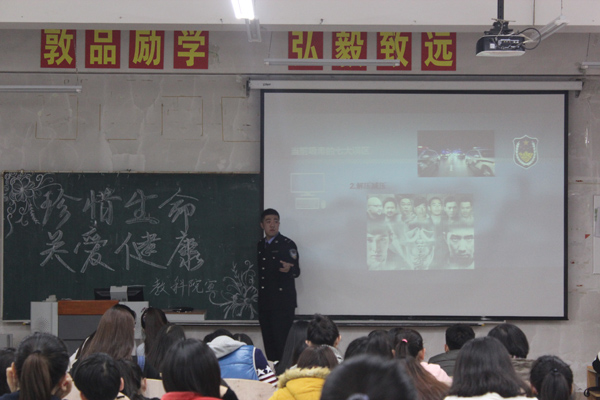 于2015年12月10日在社科楼629教室举办了“珍惜生命、健康成长”安全知识讲座。