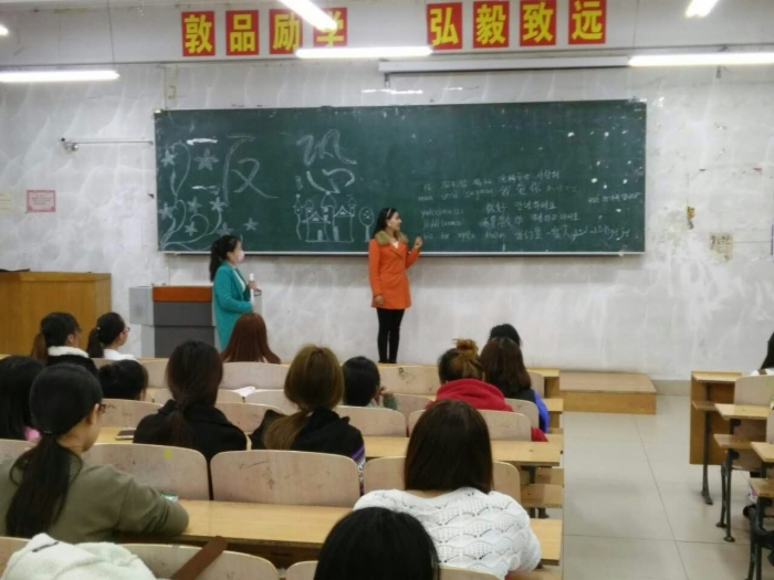 在活动中,同学们认真的学习了国家颁布的《中华人民共和国反恐怖主义法》,各班分别以抢答反恐问题,分享小知识资料等形式来宣传反恐知识,并通过演绎有关反恐的小品,观看反恐主题电影等形式更是引起同学们的注意力。班会将反恐话题拉进学生生活,提高了同学们的安全意识。使学生们在轻松的氛围中掌握了实用的反恐知识。