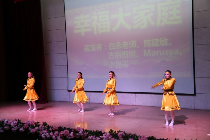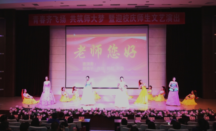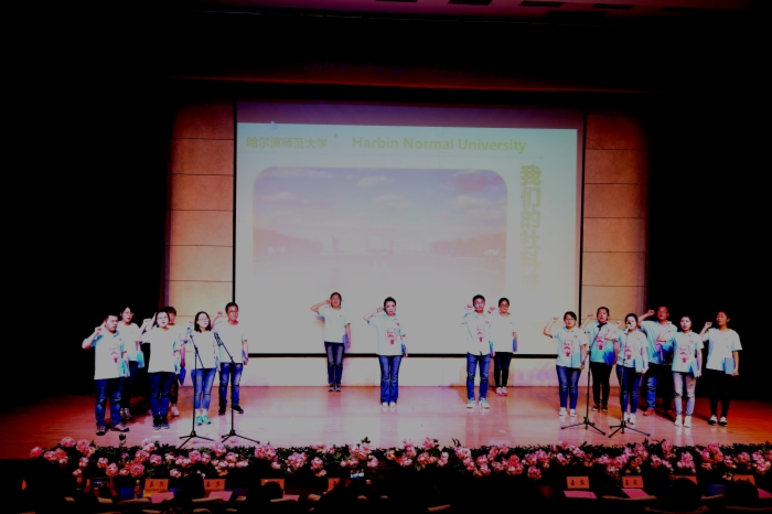 演出在学前教育系李晓莹和赵君英老师轻松欢快的《节日欢歌》中拉开帷幕,《幸福大家庭》师生同台,共同演绎了俄罗斯、蒙古国的异国风情以及蒙古族、朝鲜族、新疆维族同学的家乡美。张青云老师《我的深情为你守候》表达了师大人对师大浓烈而深沉的爱;《哈师大永恒的传奇》、《青春不留白》等展现的则是学生对母校的祝福与期盼;《傣家的女儿傣家的雨》、《青春舞曲》、《舞动青春》等一支支优美动感的舞蹈展现了学生扎实的舞蹈功底,舞姿欢快,令人心旷神怡,如痴如醉;《我是理想家》、《与青春相伴的日子》更是为整场演出增添了欢乐的旋律,赢得了阵阵喝彩和热烈掌声。最后,在一曲《老师您好》的优美歌声中,领导嘉宾上台与全体演出人员亲切握手并合影留念,晚会圆满落下帷幕。