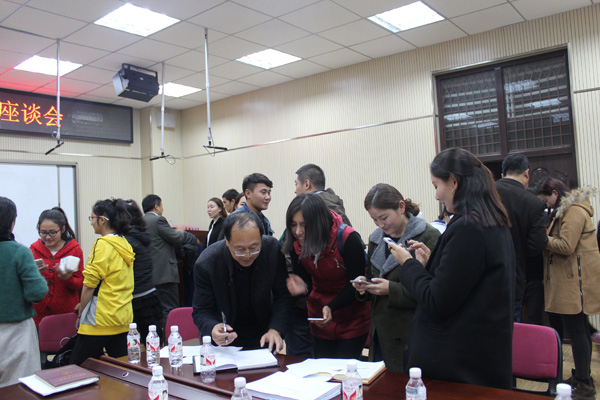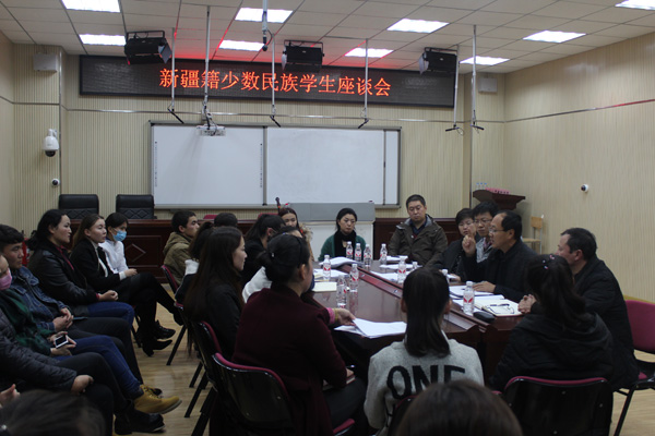 领导班子成员、新疆內派服务管理教师、辅导员及新疆籍学生参加了座谈会。