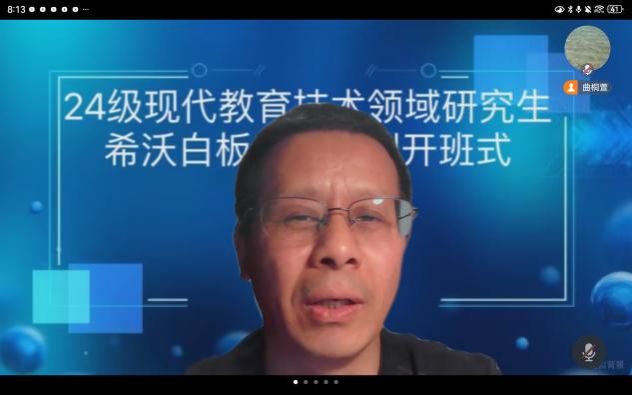 (曲桐萱/文)为提高教育硕士研究生的信息技术应用能力,提升他们在未来工作中的竞争力,现代教育技术领域每年秋季学期针对研一学生开展希沃白板应用集训活动。第六届集训营开营仪式于2024年10月31日晚通过线上方式举行,参与开营式的有现代教育技术领域负责人李岩老师,校外兼职导师香坊区教师进修学校孙文方老师、校外实践指导教师哈尔滨市风华学校吴蕊老师、希沃教师发展中心东北区主任叶子初老师及2024级现代教育技术领域全体研究生。