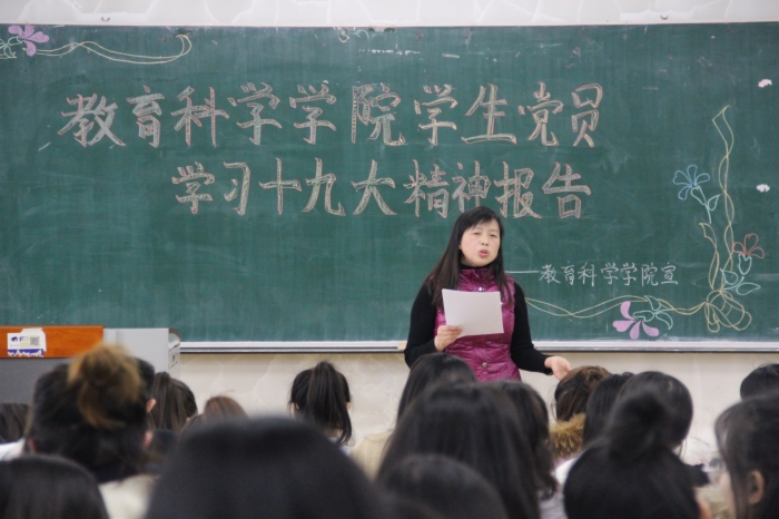 会议伊始,她指出作为一名学生党员的初心和使命就是认真学习党的知识理论,勇于实践,做到真正从思想上增强党的意识,自觉以“三个代表”重要思想为行为准则,积极投身党的事业并做出贡献。她勉励青年党员要勤奋学习,与时俱进,树立正确的世界观,人生观、价值观。同时学生党员应做好模范带头作用, 要更加珍惜时间、刻苦学习、努力钻研、立足当前、展望未来,除要从书本中吸取理论知识外,更需要到社会实践中去锻炼自己,不断地培养和锻炼自己的活动能力和综合素质,同时要以高尚的道德标准要求自己,不断提高自己的专业水平和科学文化素养,为中国梦贡献自己的力量。