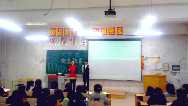 在各班团支书的组织下,同学们学习了与大学生活相关的安全知识:在宿舍发生火灾该怎样处理、宿舍常见的盗窃方式及预防、常见的人身安全问题等等。教育技术专业的同学还表演了与安全有关的小品《碰瓷》,诙谐幽默的语言、夸张搞笑的动作赢得了同学们喝彩,也使安全教育深入人心。