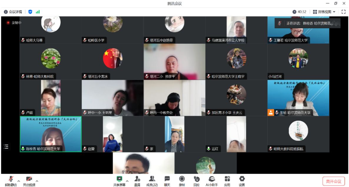 [王晓宇/文]为了做好我省新版地方教材的编写工作,2024年3月23日,黑龙江省中小学省情教材研究基地代表与大兴安岭地区地方课程实践者代表进行线上座谈,此次调研旨在了解大兴安岭地区中小学《人文与社会》教材的使用情况和地方课程的开设情况,听取地方课程实践者对新版地方课程教材编写的建议。