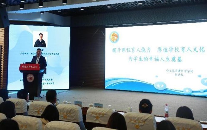 刘国权在以《提升课程育人能力,厚植学校育人文化,为学生的幸福奠基》为主题的演讲中,介绍了萧红中学在构建“明德”育人体系、形成“德蕴萧红”办学特色的过程中所做的大量的阶段性工作。